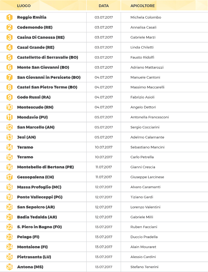 In this first round we visited 26 beekeepers in the regions of Emilia-Romagna, Marche, Abruzzo, Umbria and Tuscany. Others will follow after the summer.
